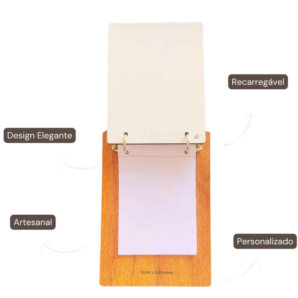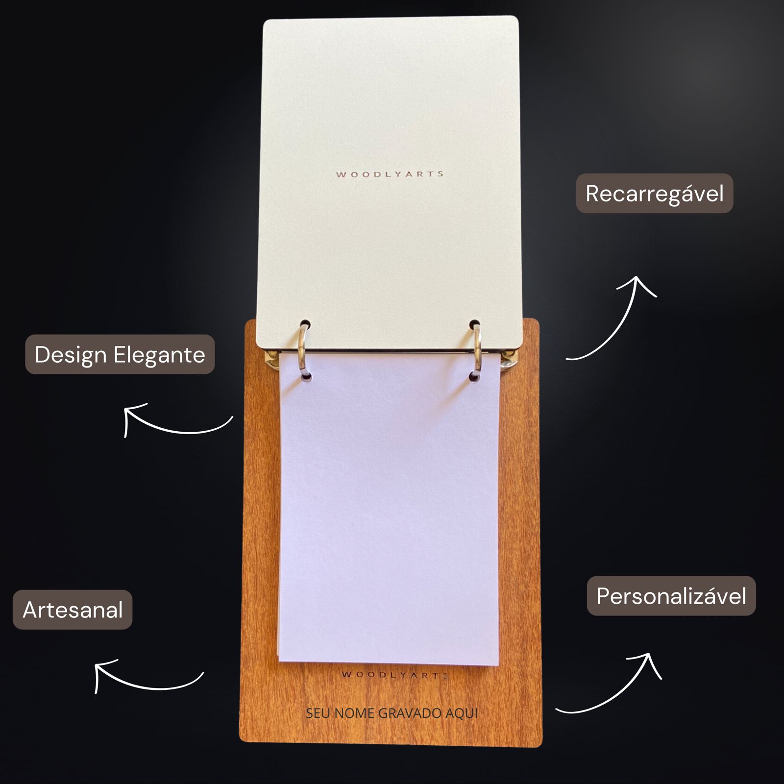 Seu bloco de anotações, sua agenda de memórias. Seu lugar terapêutico. Cada página em branco é uma oportunidade para criar, expressar, registrar, se conhecer melhor e ter momentos de reflexão. É por isso que o Woodly é feito com amor e habilidade artesanal em cada detalhe. A fim de ter ao seu lado, algo que lhe lembre a importância de se conectar com sua natureza, se conectar com o "Seu EU". Expressar e apreciar, a beleza que há no fato de sermos únicos.
